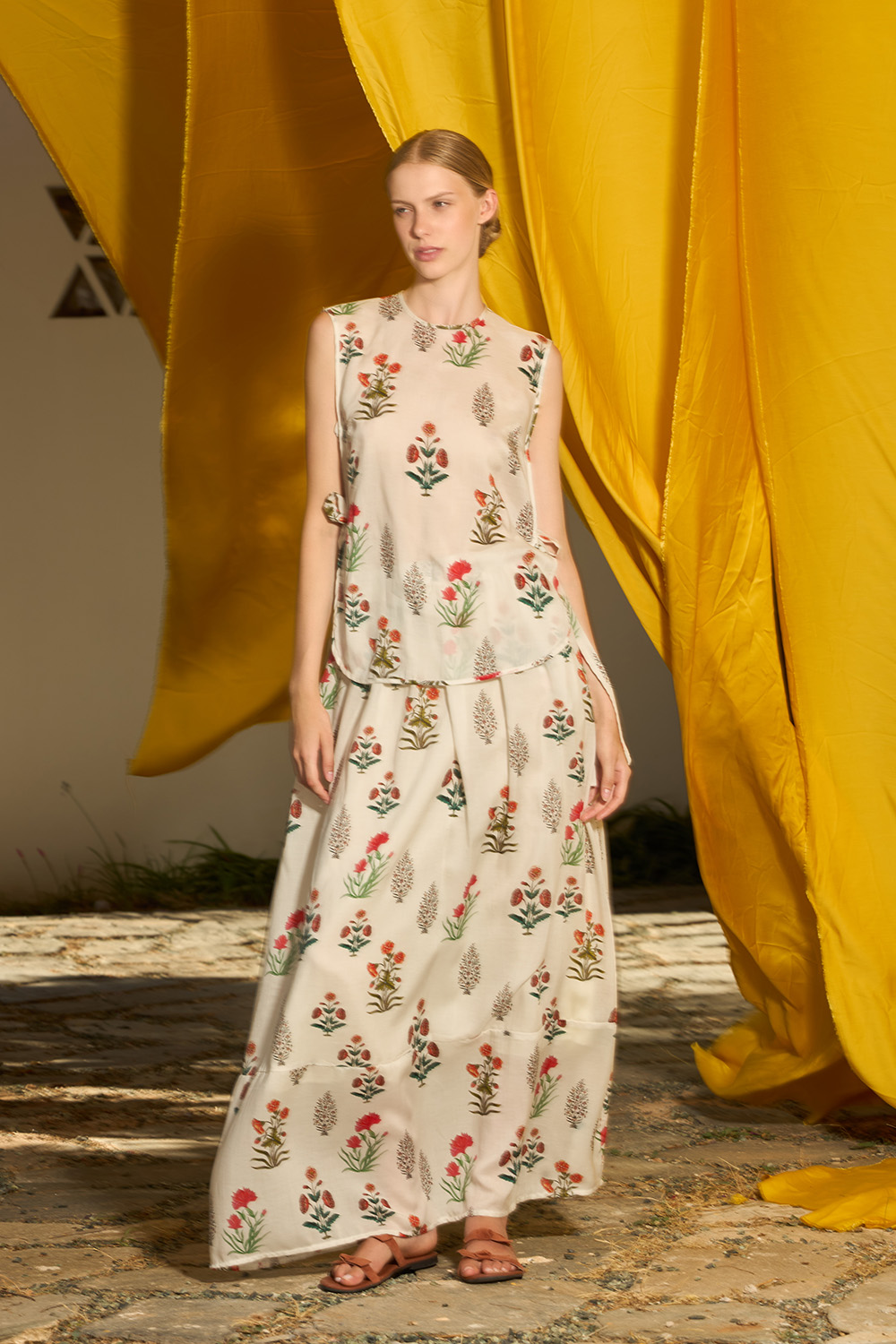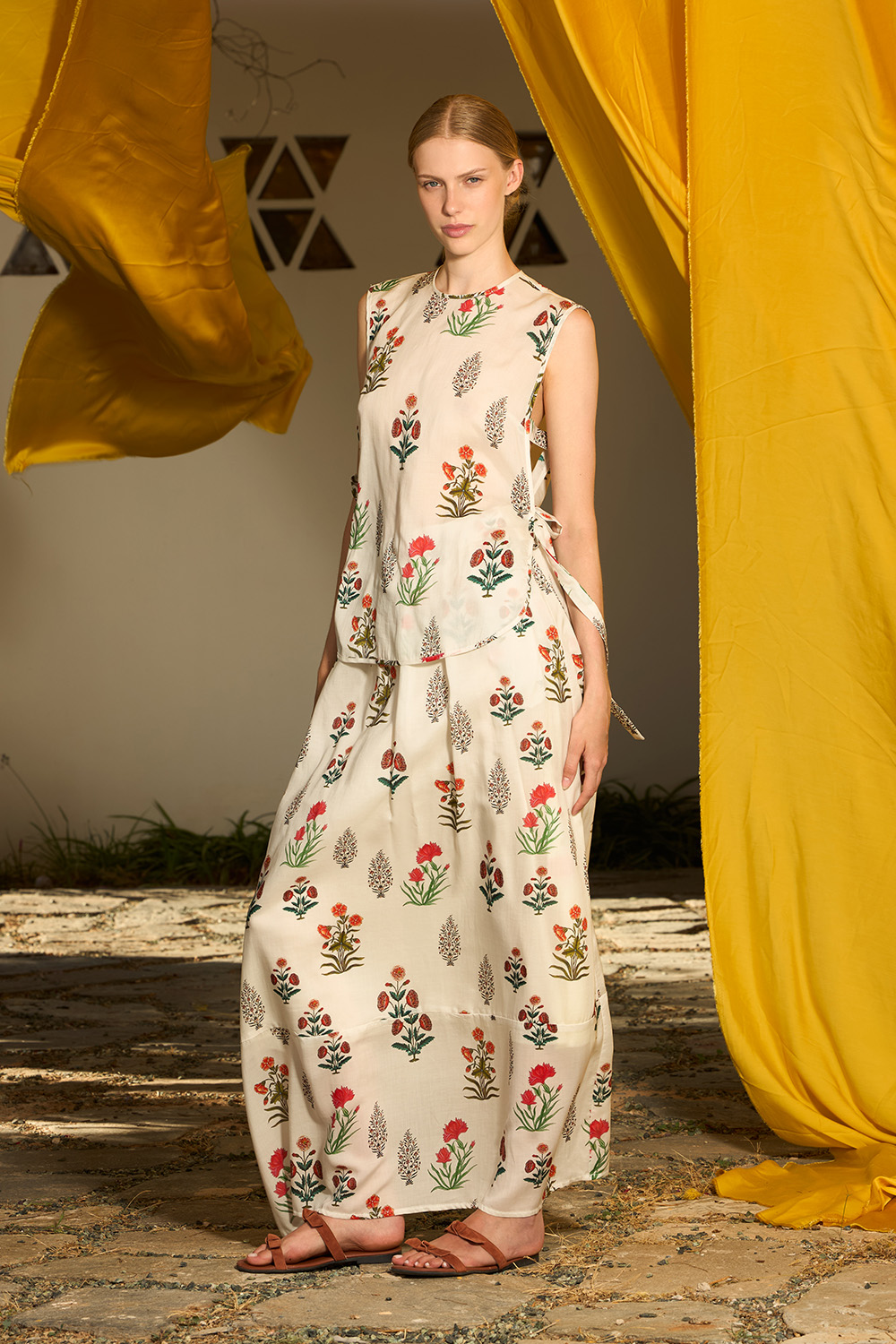 The Aliza Cream Top is an effortless sleeveless design made of the gentle textile of tencel. The opening on both sides that are slightly closing with tightening the cords along with the round neck showcase a very unique style through a so easy to wear piece.