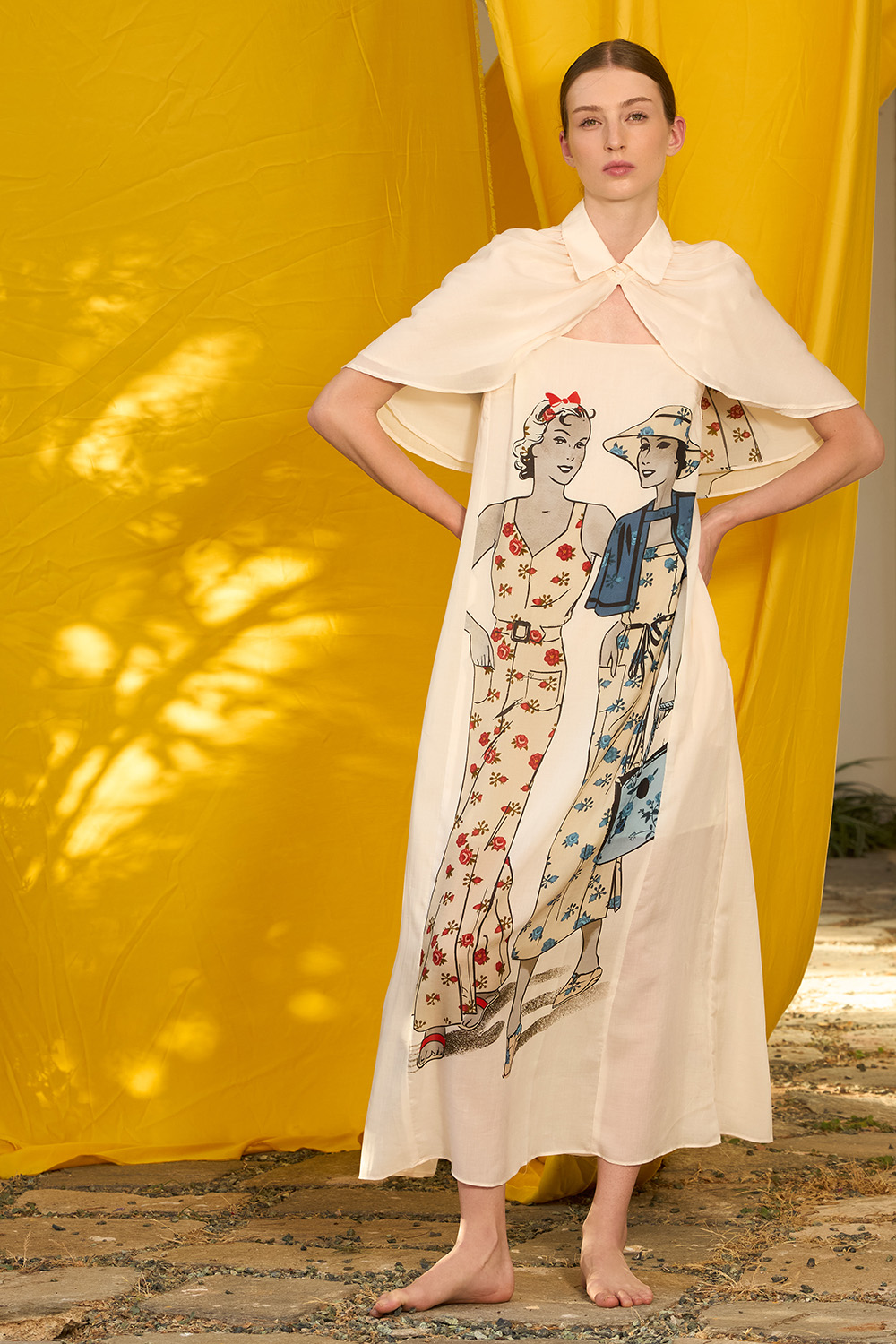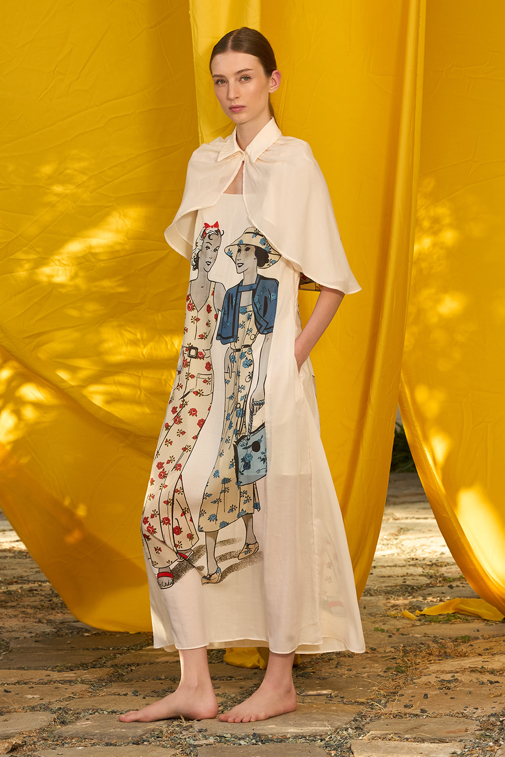 The Amora Dress a regular fit maxi design with spaghetti stripes and zipper on one side. The small elastic band on the back give away some extra comfort while its so unique pattern is made to stand out with the elegant feeling of tencel.