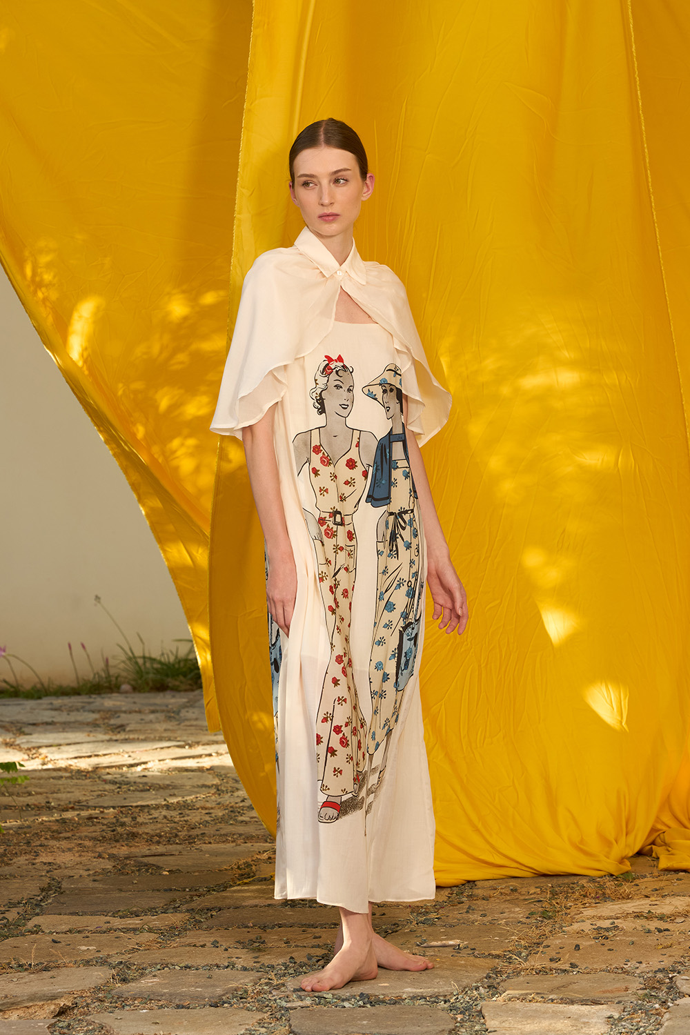 The Amora Cape is an elegant yet modernly stylish design made of the fine textile of tencel. With one distinctive button on the center of the chic classic collar this piece softly hugs the shoulders and makes every appearance attractive.