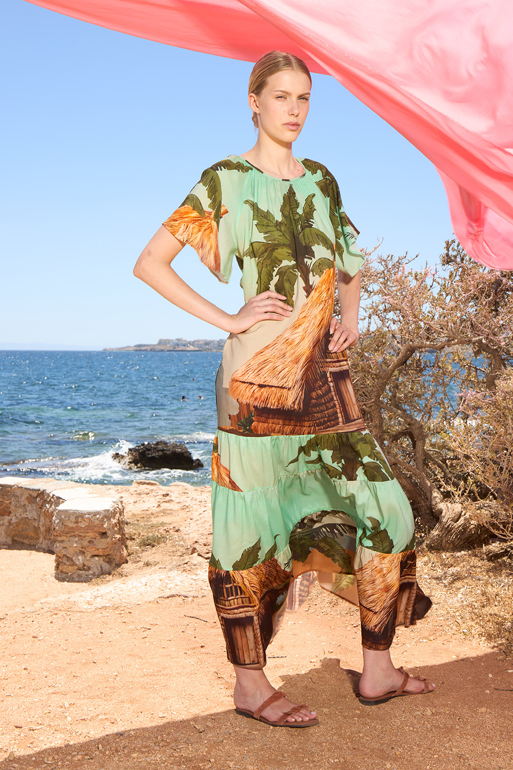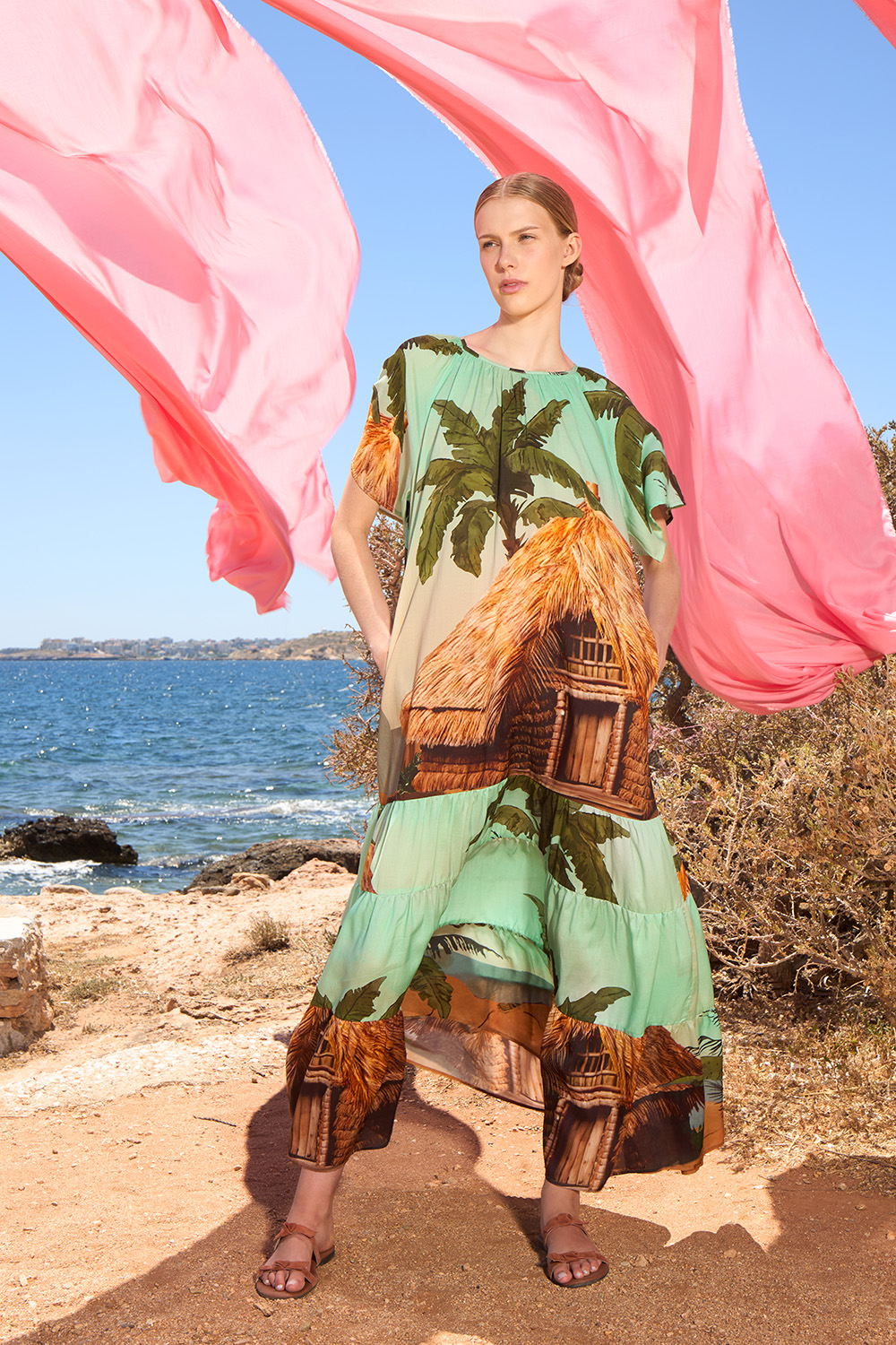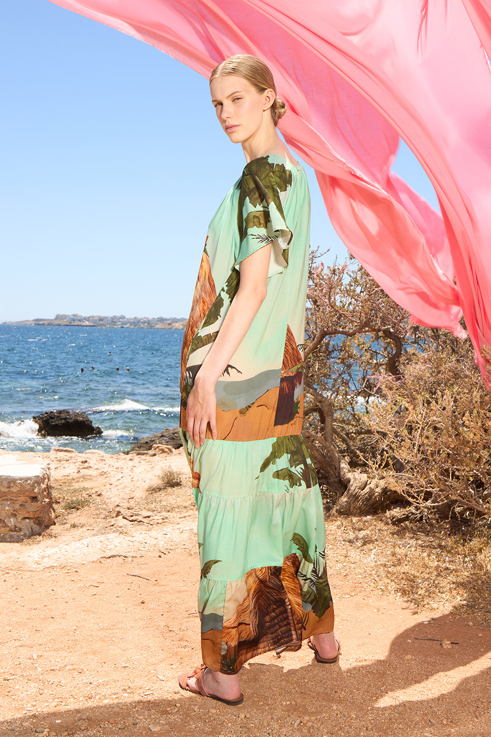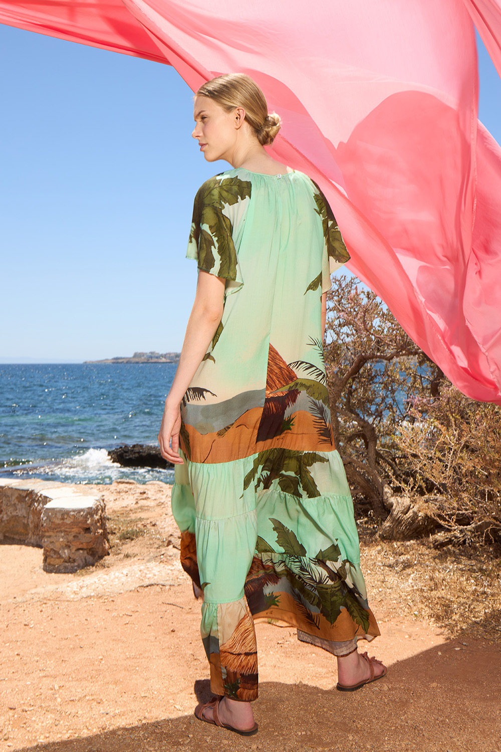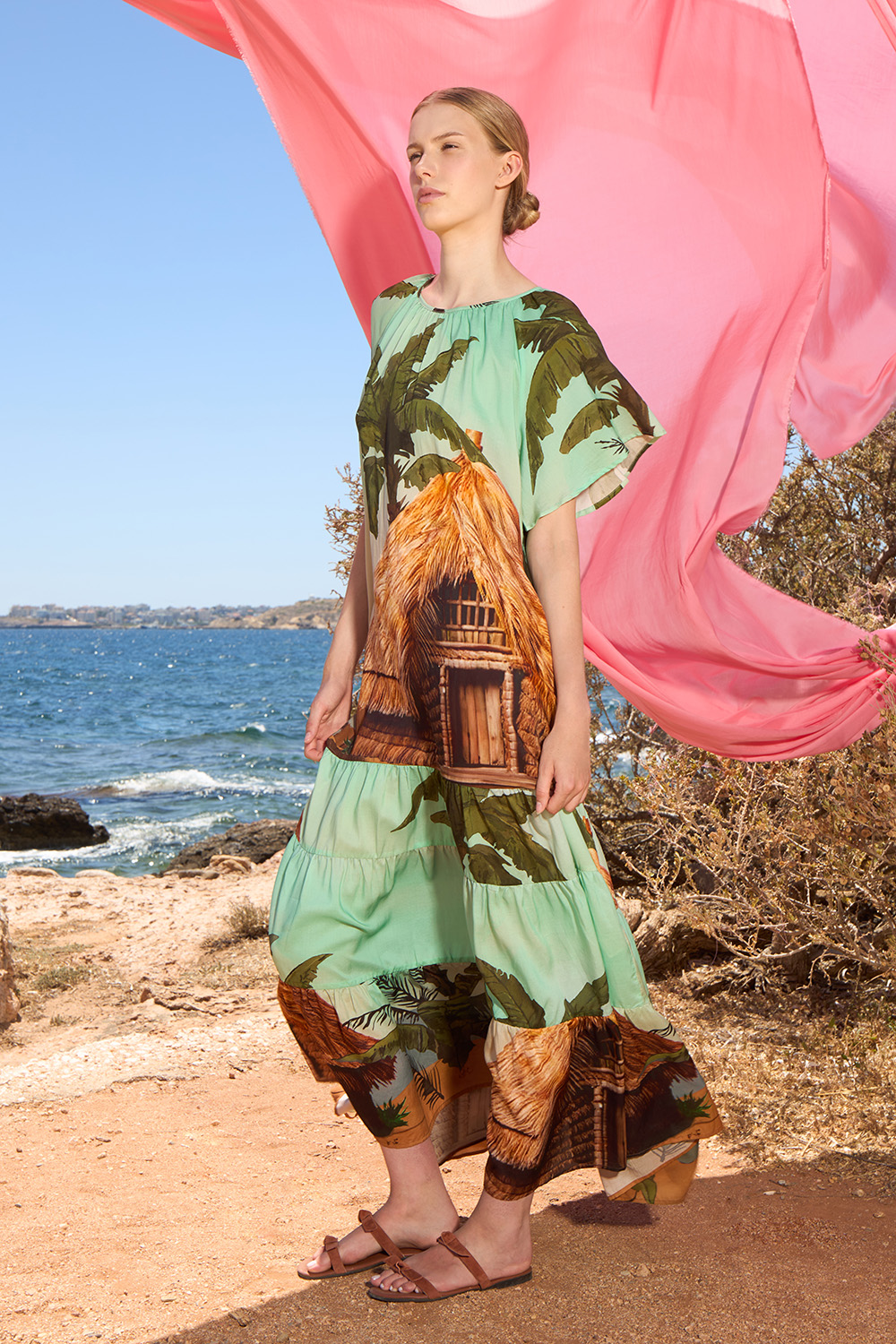 The Anya Palm Green Dress is the most summerish way to embrace effortless elegance. This maxi design featuring the vibrant palms that exudes bohemiam charm can easily stand out. The flowy silhouette and the tiered skirt create such a graceful movement and make this piece perfect for all kind of special occasions.