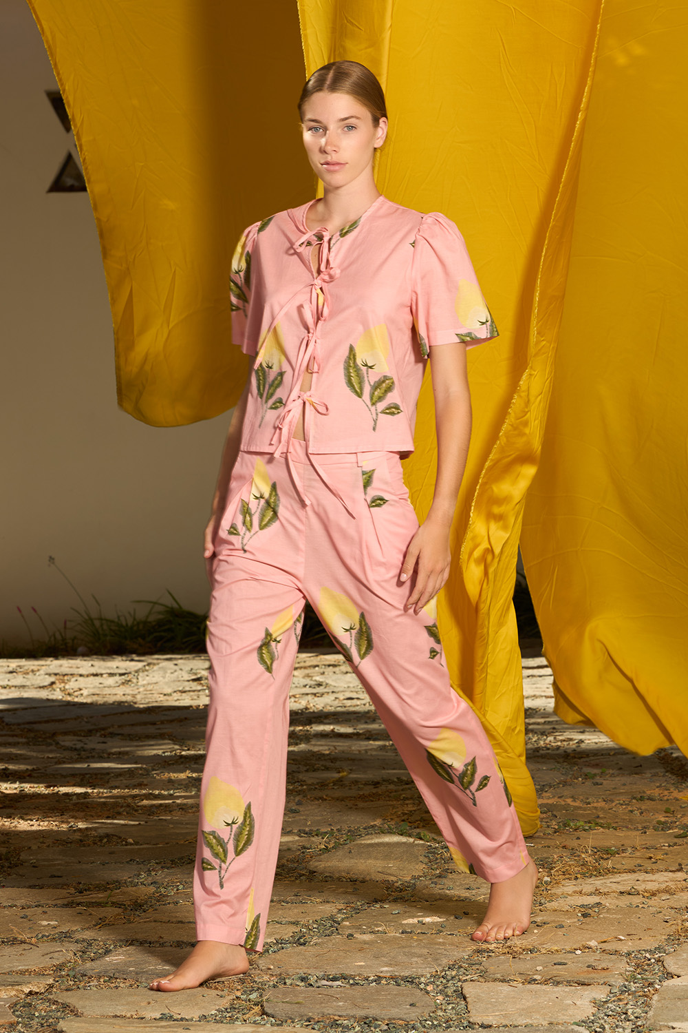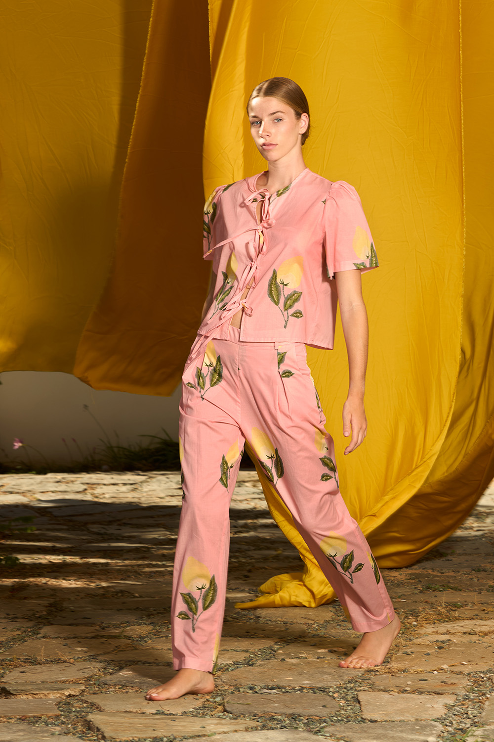 The Liam Pants is a beautiful piece made of cotton. Their print features the summerish vibe of lemons. They have a straight line, belt loops, pockets and a side zipper making it a practical statement piece for any occasion.