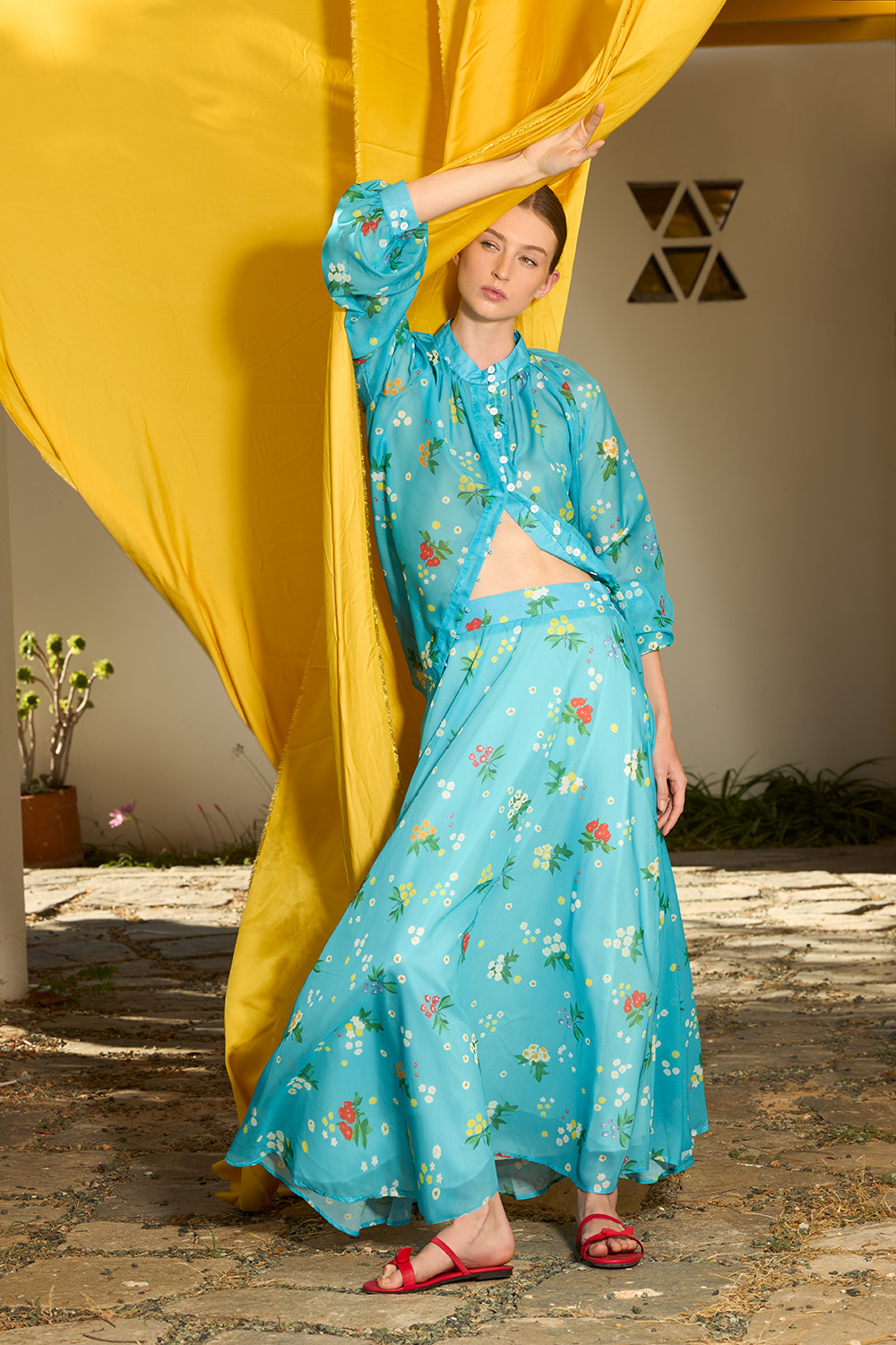 The Rania Aqua Shirt is a delightful regular fit piece made of the special combination of silk and cotton. The stand collar and the long sleeves with the cuffs give away a dynamic yet feminine look while the joyful color showcases the beauty of summer. The buttons on the front complete this classic design and make it so easy to wear.