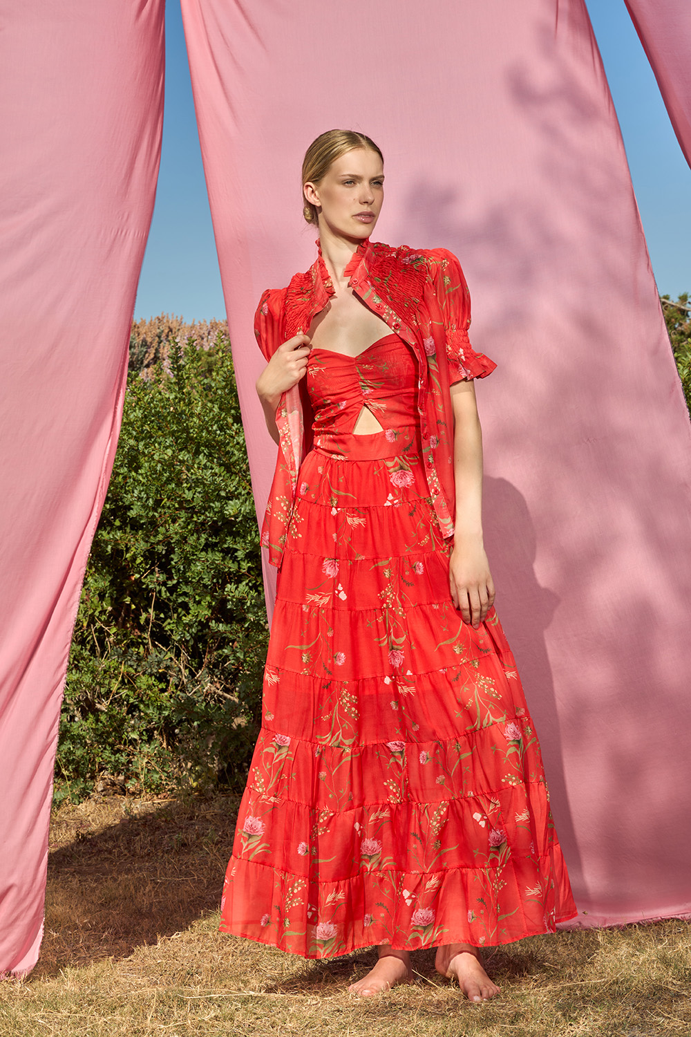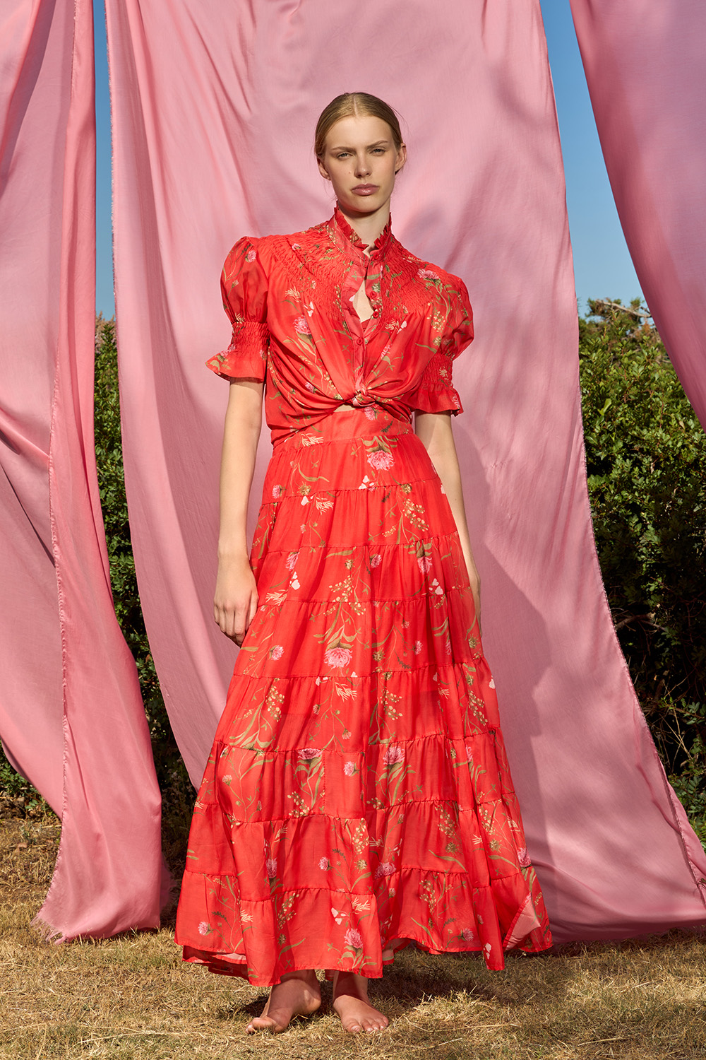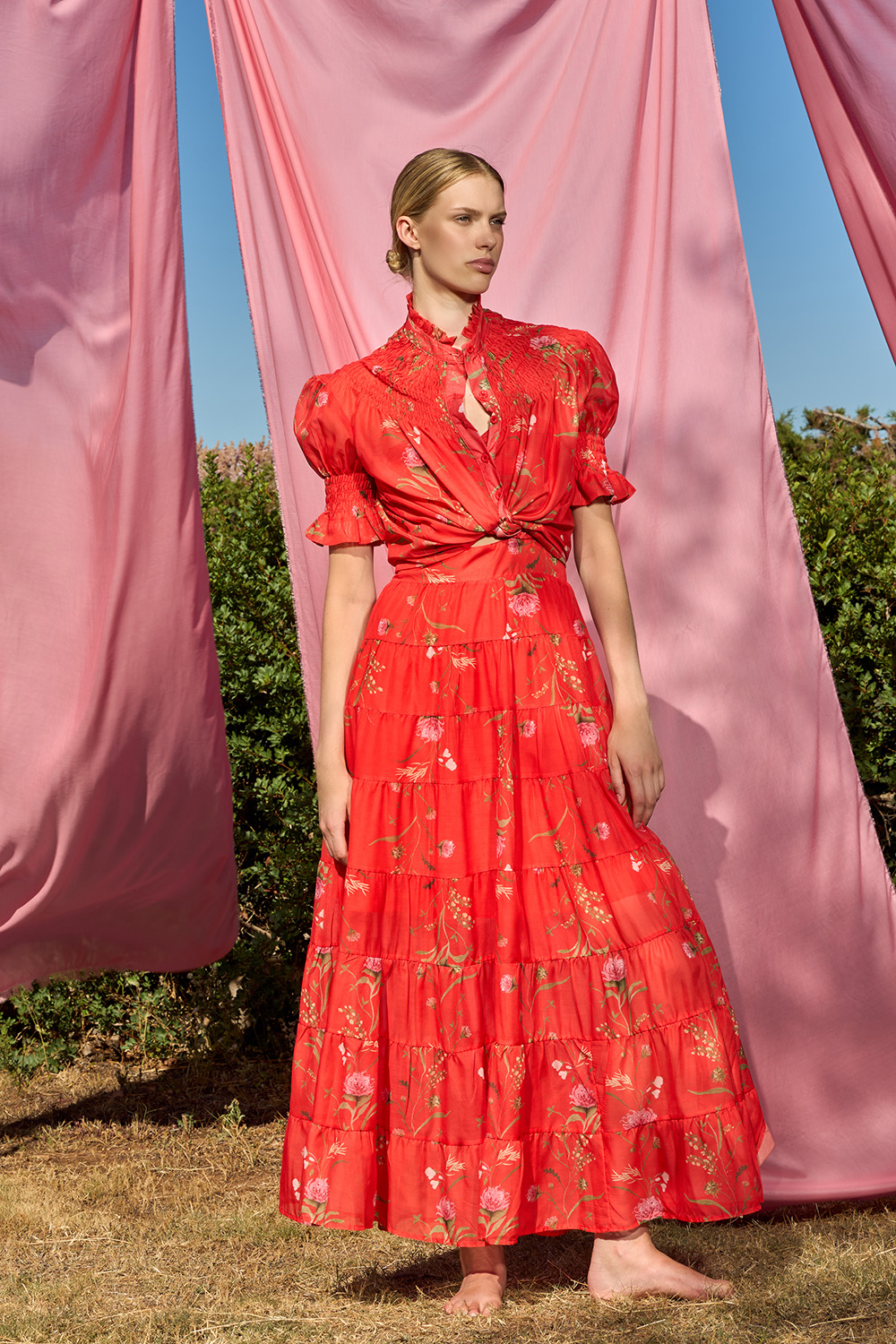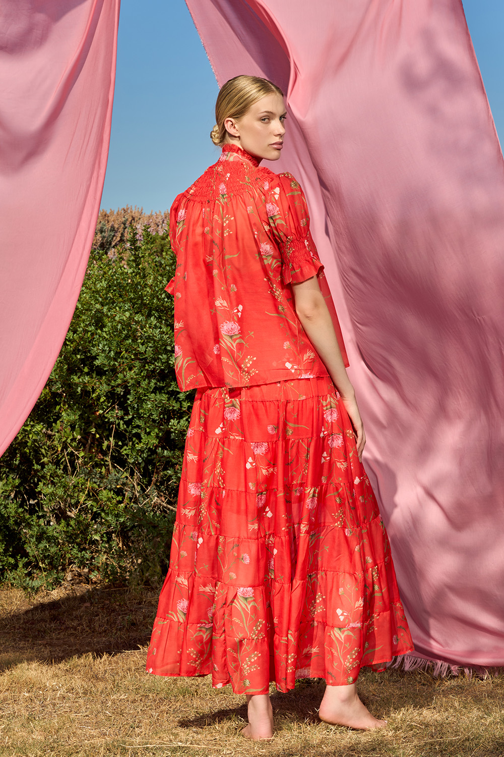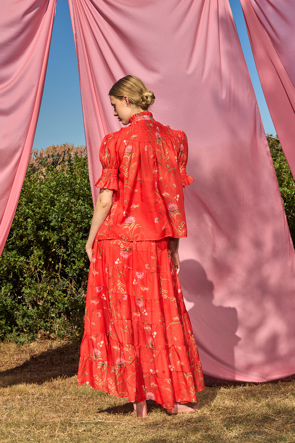 Risty Red Shirt is a unique piece that knows how to stand out. The honeycomb with the ruffle on the short sleeves and under the collar create an image worth adoring for. This regular fit shirt with buttons on the front is an unbeatable combination of charm and modernity.