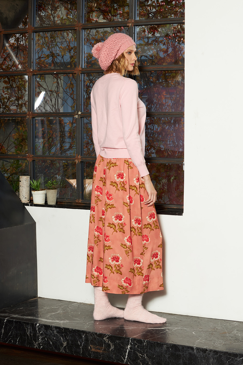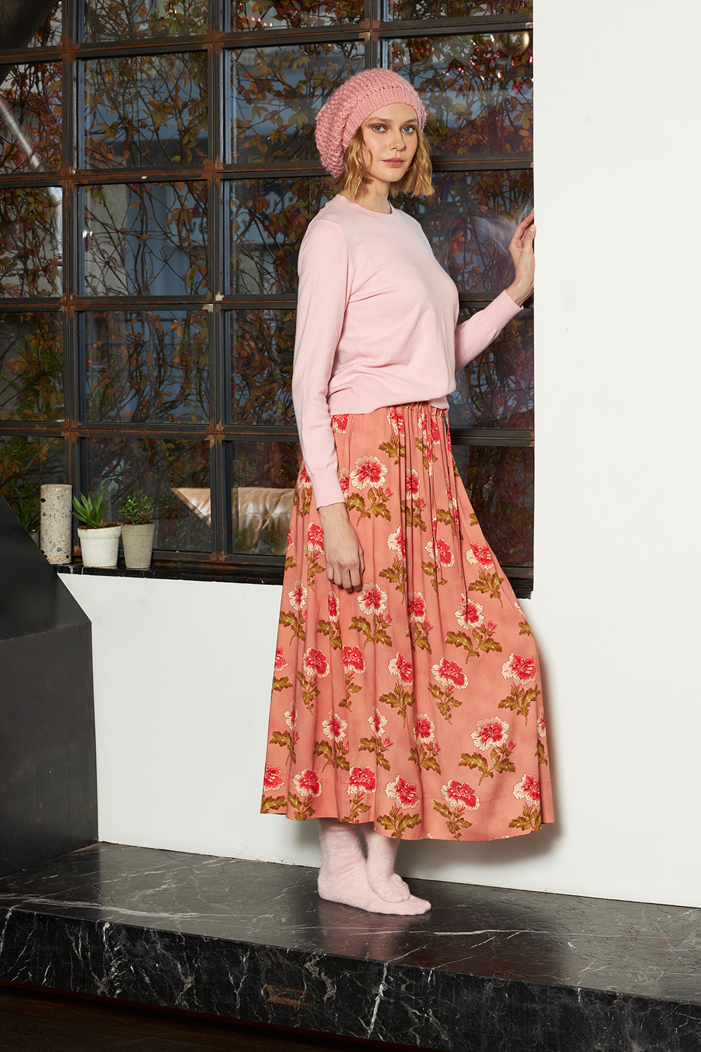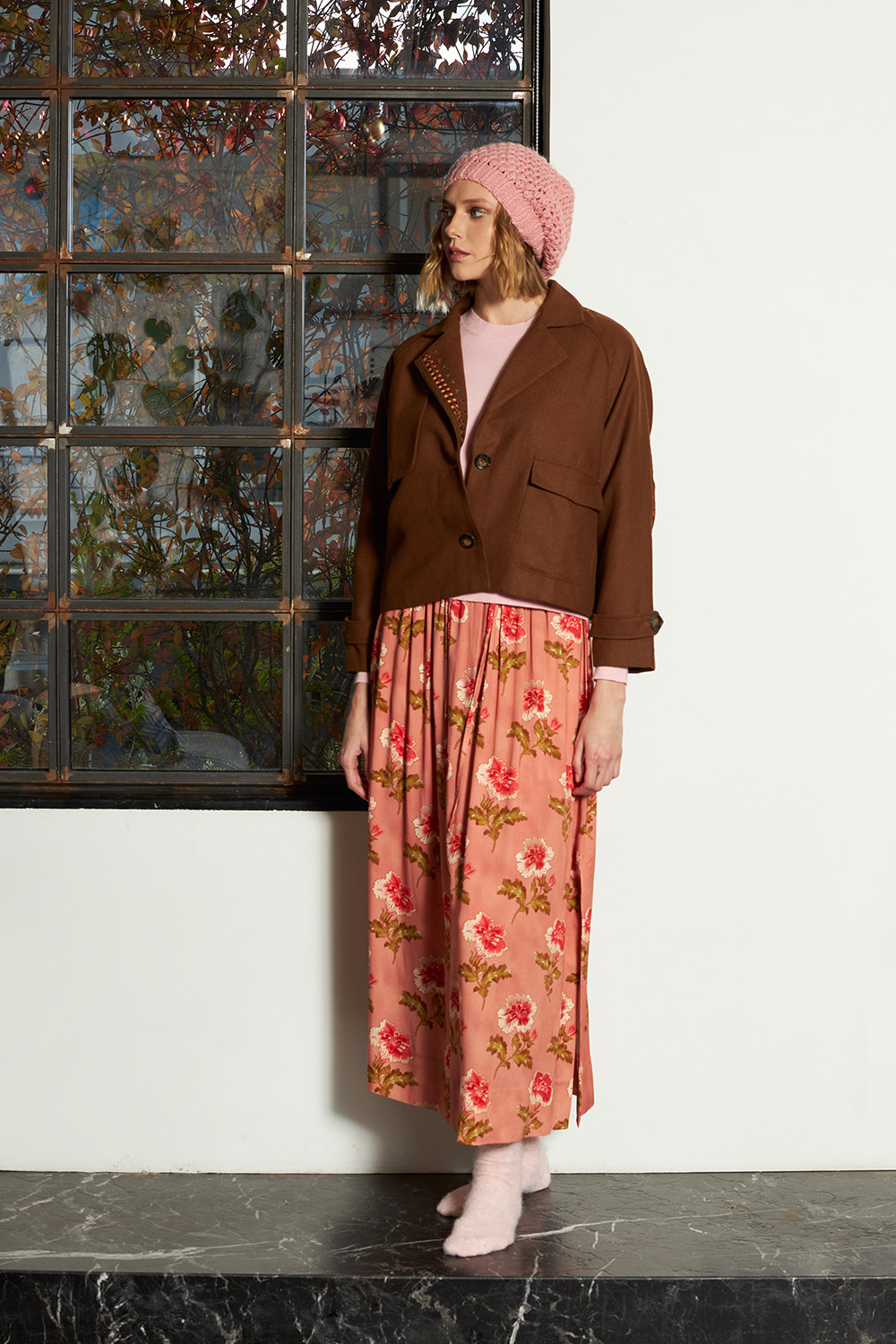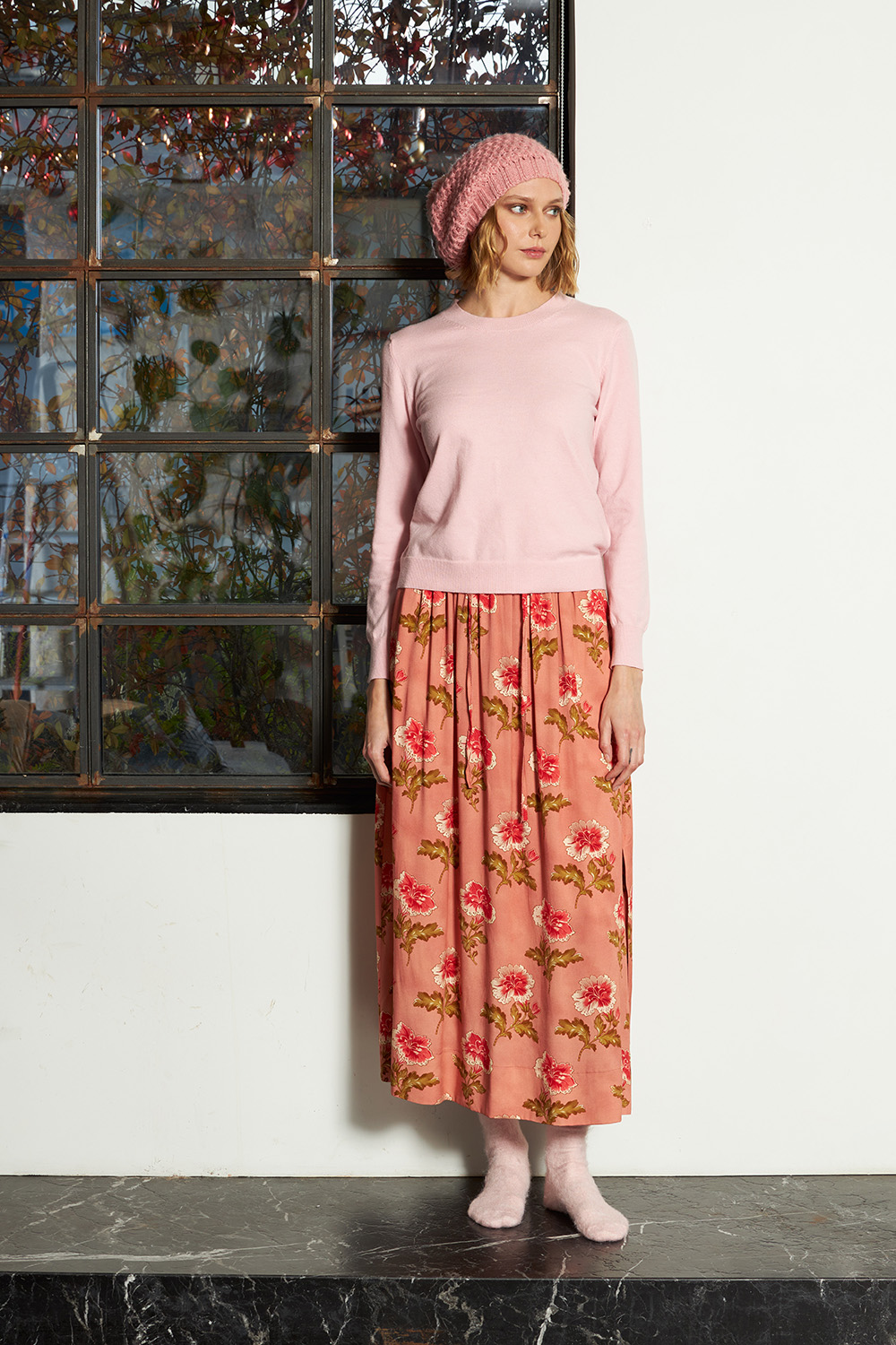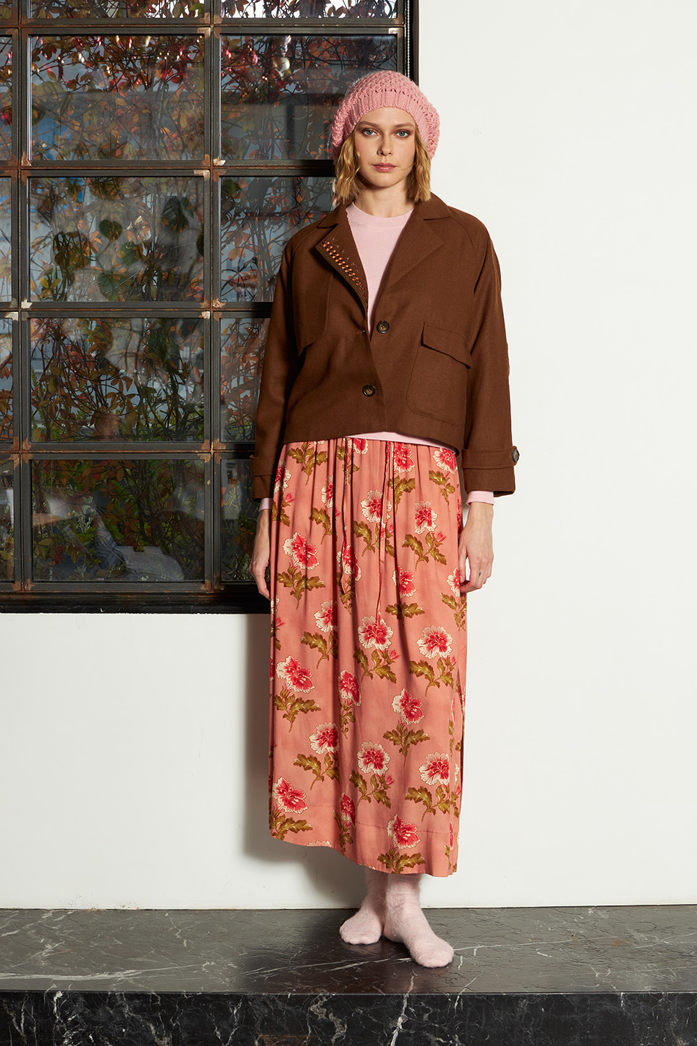 Midi skirt with an opening in one side. The waist is elasticated and it has strings that allow you to adjust it on your body.
