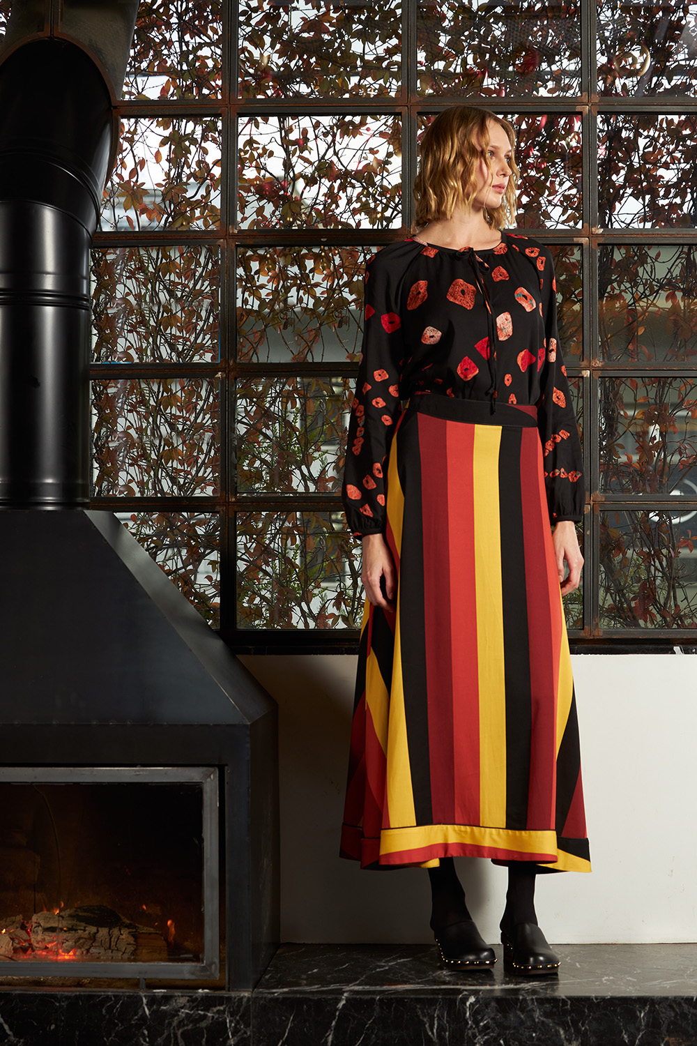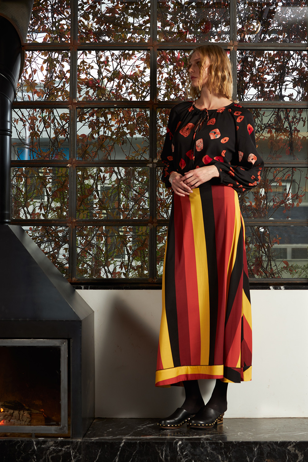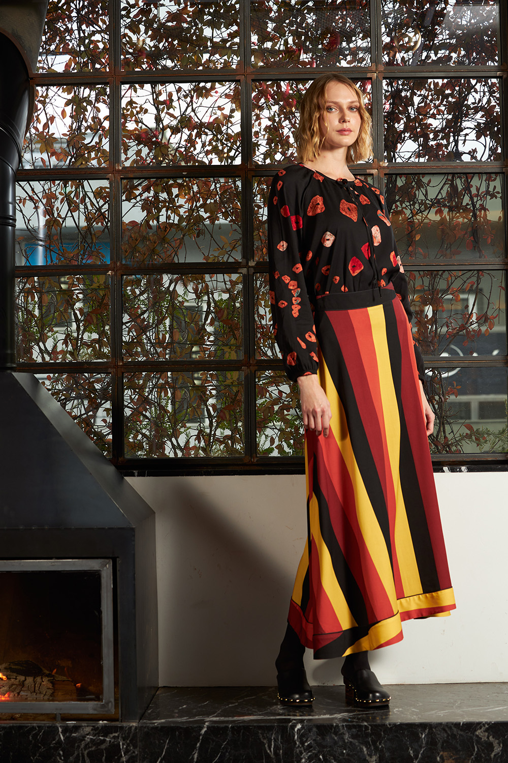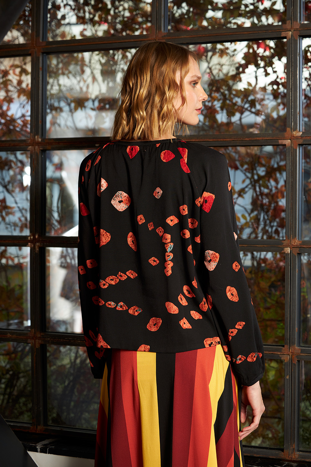 Regular fit shirt with a bishop sleeve. With strings on the neckline that if they get tied are taking the shape of a keyhole.