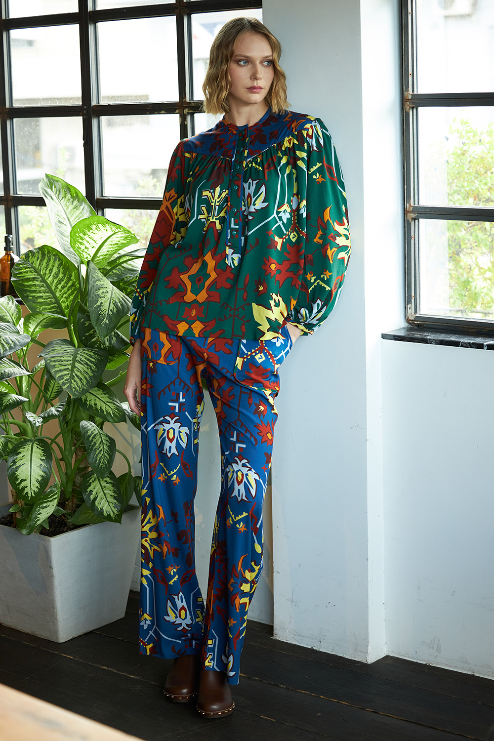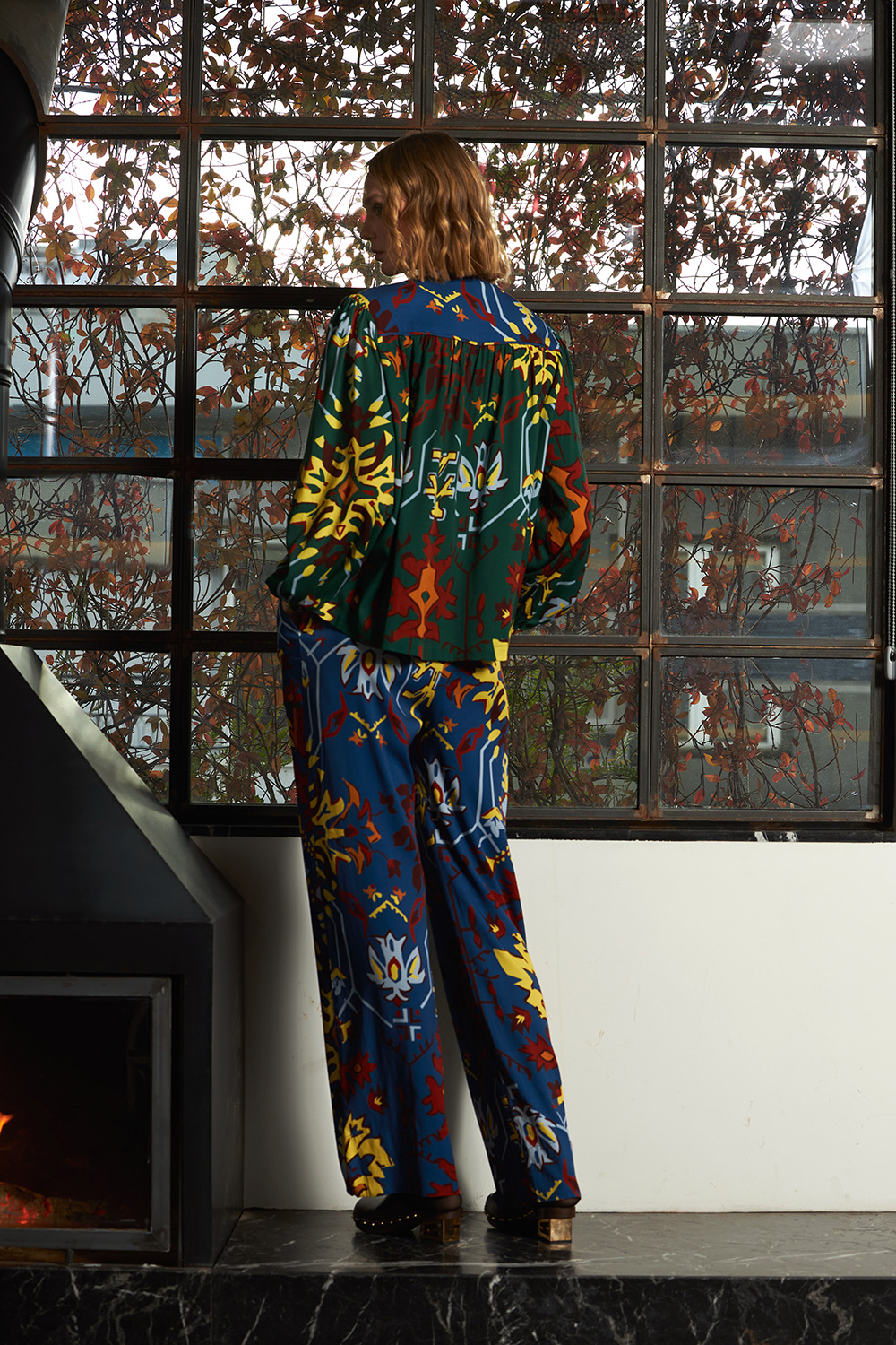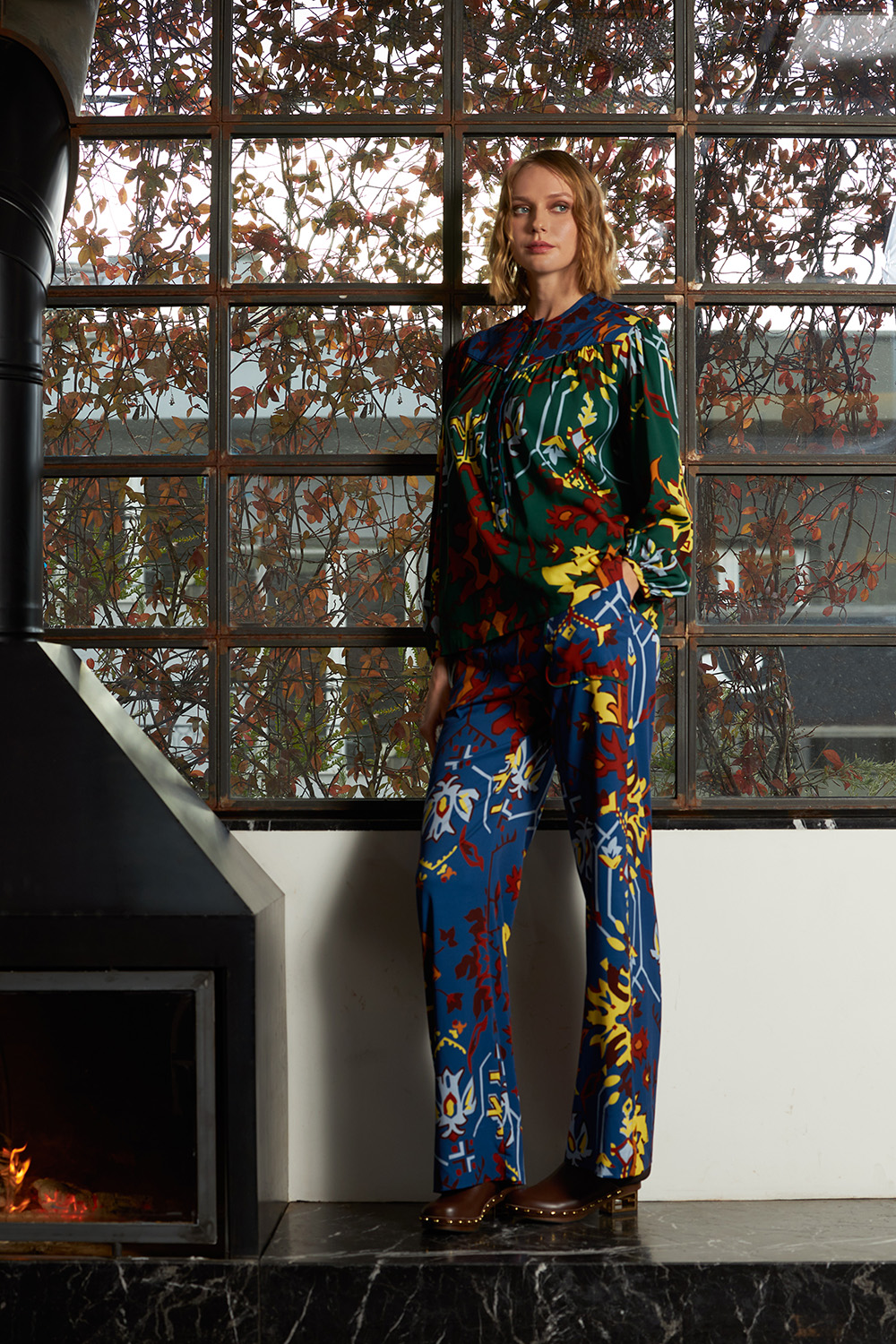 Regular fit shirt with a shoulder blade in a different colour and frills around it and around the end of the sleeve.