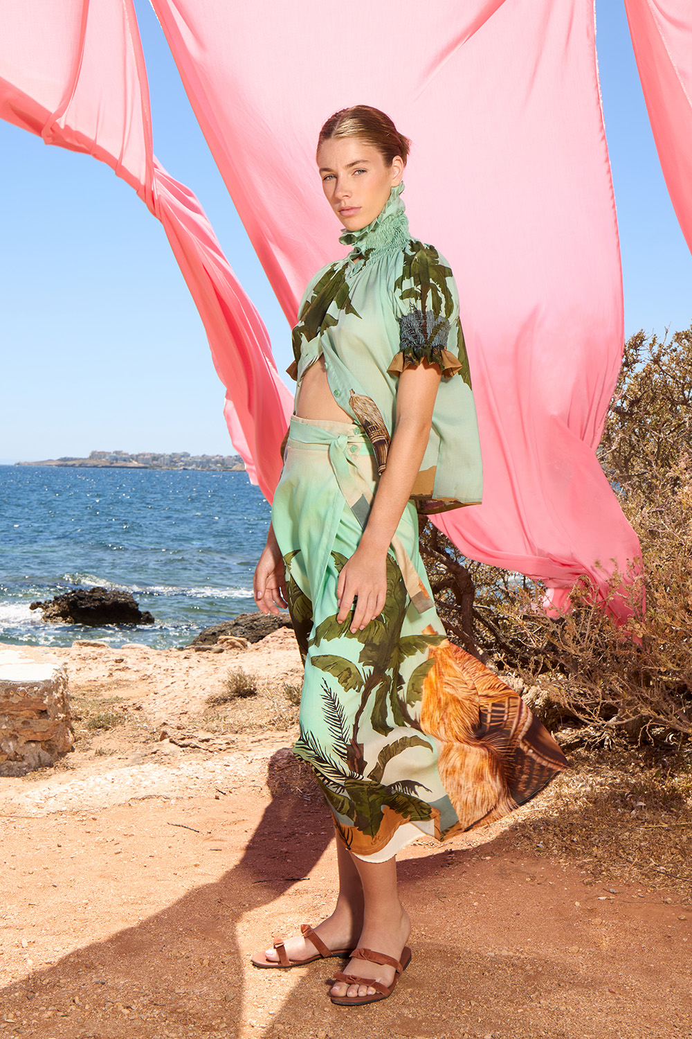 The Anya Green Skirt is a midi wrap design made of the splendid tencel fabric. The A line of this skirt makes it extremely flattering and its texture so coolness friendly. The belt around the waist perfects the look and flawlessly adjusts the waistline.