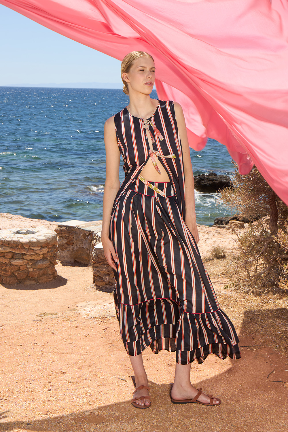 The Astree Blue Skirt is a slim fit high waisted piece made for a unique appearance. The maxi length along with the large waistband and the playful ruffles at the end are giving away the most delightful vibes. The zipper on the center back offers the perfect adjustment.
