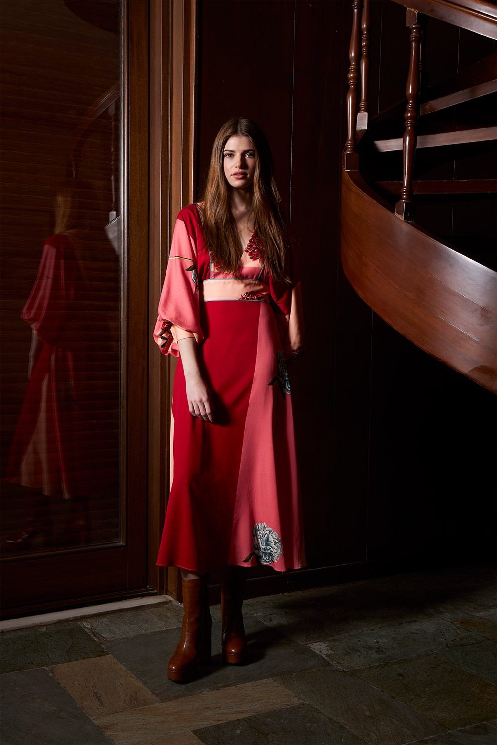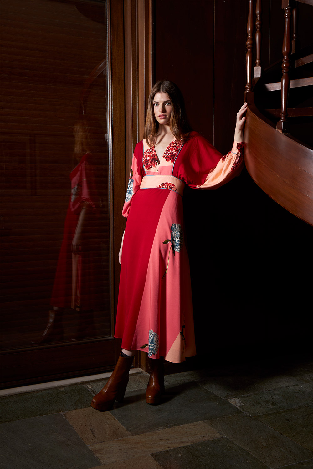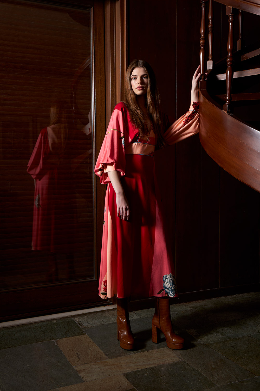 romantic midi dress with puffed bat sleeves.