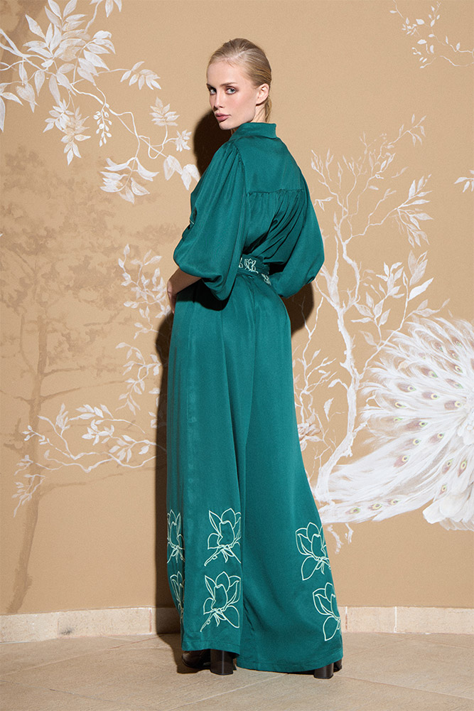 The Divina Embroidery Petrol Pants is the comfortable and stylish pants your wardrobe was searching for this season. This high waist design with the wide legs and the exquisite embroidery at the end creates the most fashionable appearance. The side pockets add even more style to a design that can easily stand out while the zipper on the center back offers the perfect adjustment.