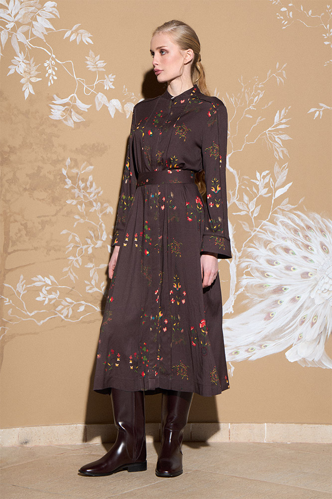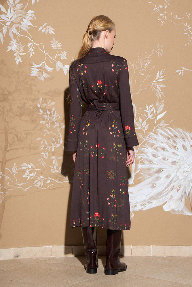 The so warm color of the Estefania Chocolate Shirt is here to dress up winter in the coziest appearance. This regular fit piece gives away comfort and grace while the cords on the neckline can create a keyhole if tied and combined with the ruffle at the finish offer generously some extra delight to the look.