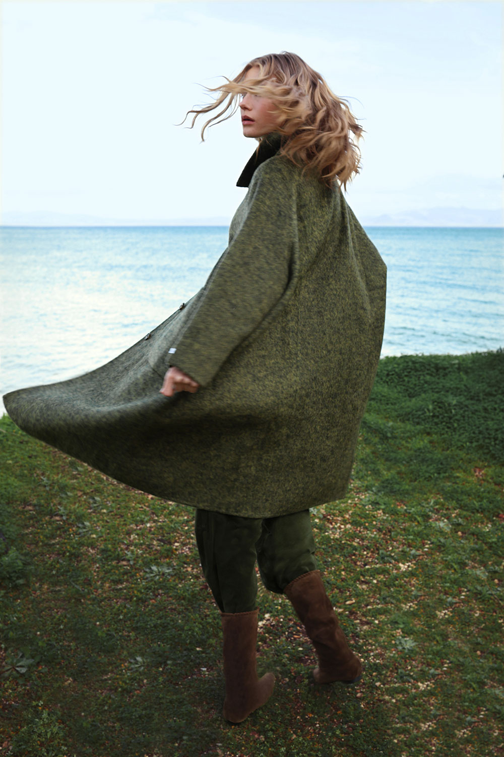 The Harmony hunter coat is the winter coat of your dreams. It closes with buttons, has a deep hunter green color, a distinct collar. wide long sleeves, a loose fit and deep patch pockets for style and practicality.
