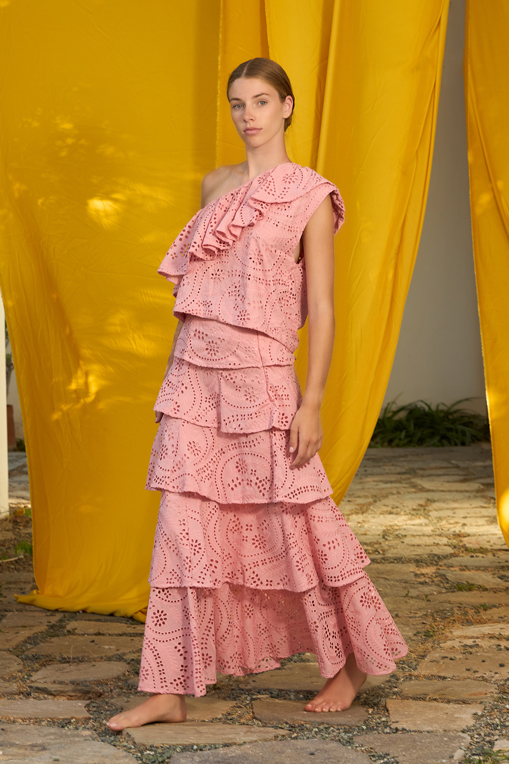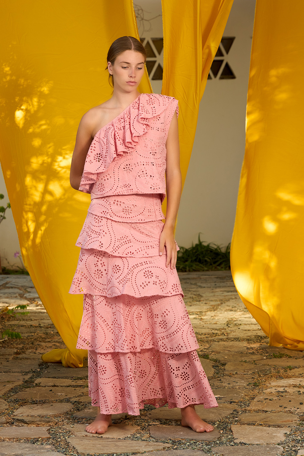 The Rosemary Embroidery Pink Skirt is an ultra stylish and chic high waisted slim fit skirt made to dazzle. The ethereal embroidery on this delicate cotton texture covers thoroughly the symmetrical ruffles while a zipper on the center back creates the perfect adjustment for the waistline. A definite way to stand out.