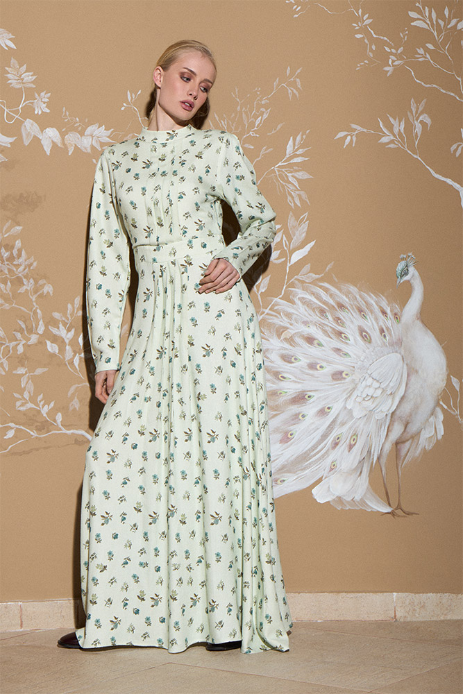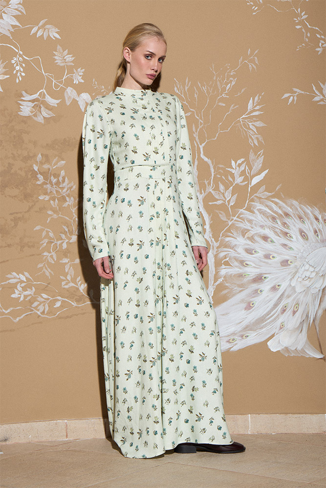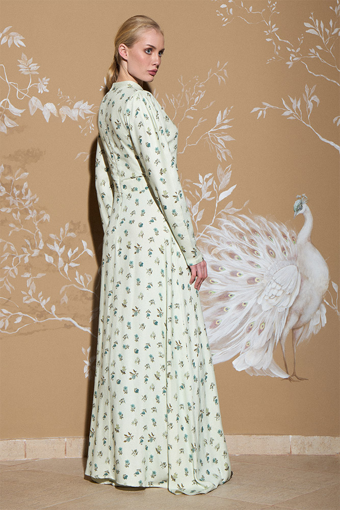 The Sandrin Dress is a maxi slim fit design that carries away all the femininity and majesty of winter. The long sleeves with the distinctive fold on the center of the shoulder and the so delicate pleats on the front create a look full of glory and beauty. The zipper on the center back offers the perfect adjustment to a dress made of the fairest dreams.