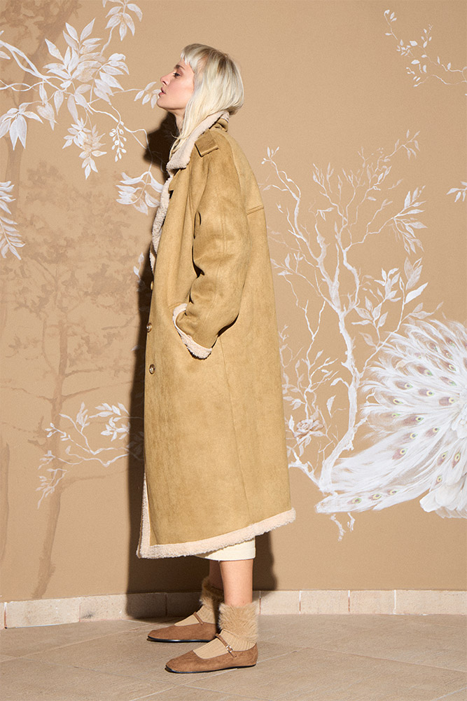 The Uma Eco Friendly Coat is an ethereal design made for a perfect eco friendly winter. The large collar and the buttons on the front that make it wrap transform this coat the absolute must have of the season while the faux fur on the inside and on the cuffs give this piece the coziest and most endearing feeling.